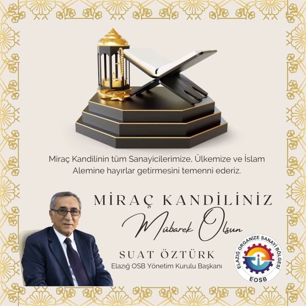 06 Şub Haberler Başkanımız Suat Öztürk’ün Miraç Kandili Mesajı Şubat 6, 2024 Tarafından Site Yöneticisi 0 yorumlar Miraç Kandilinin tüm Sanayicilerimize, Ülkemize ve İslam Alemine hayırlar getirmesini temenni ederiz. Suat Öztürk Elazığ OSB Yön.Kur.... Okumaya devam et